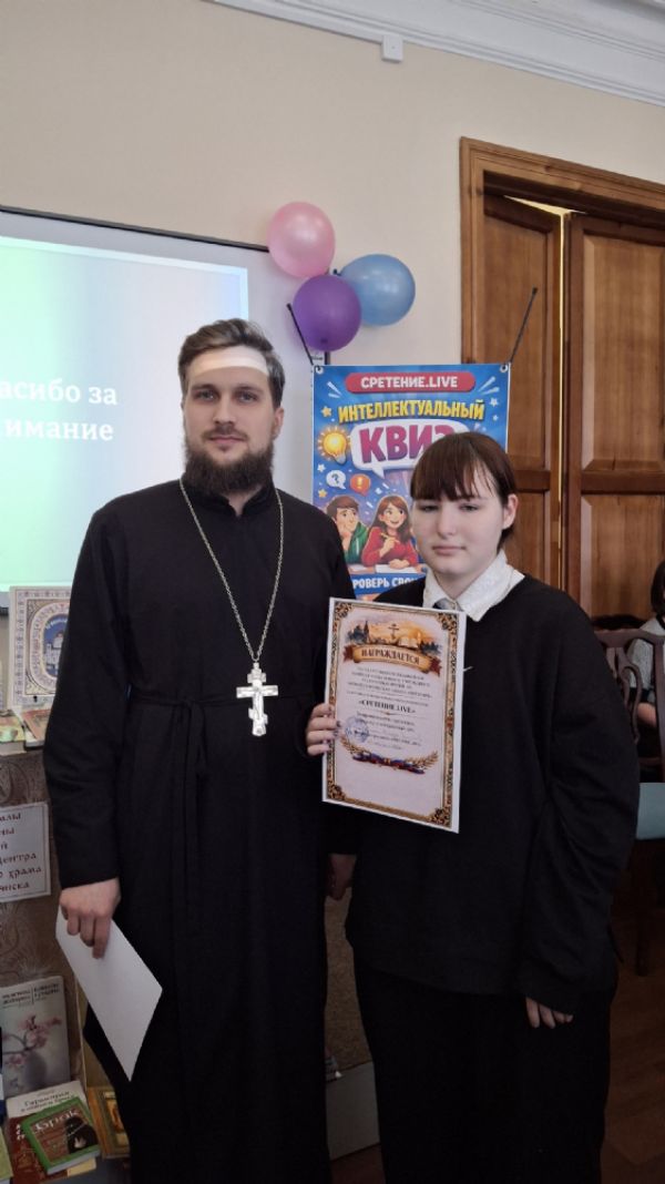 Настоятель Тихвинской церкви, помощник благочинного по молодежной работе иерей Феодор Ромашов провел для ребят увлекательный интеллектуальный квиз «Сретение. LIVE». Участники смогли не только проверить свои знания, но и узнать много нового.