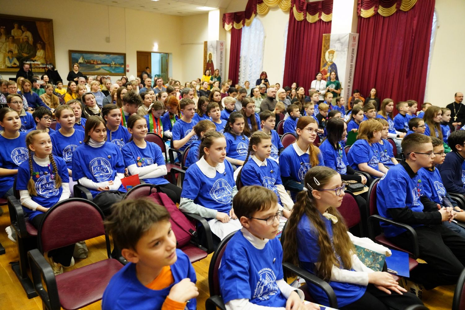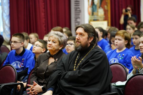 Далее все собрались в актовом зале Православного центра на торжественную церемонию открытия, которая традиционно началась с исполнения гимна России. Куратор Олимпиады – заместитель директора Православной Свято-Петровской школы г. Москвы Викентий Генриевич Абрамян рассказал об истории этого интеллектуального форума, о заданиях, которые составлены таким образом, чтобы участники могли проявить творческие способности и критическое мышление, а также умение работать в команде.