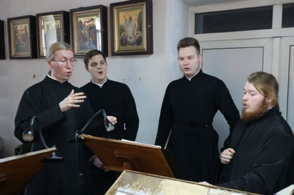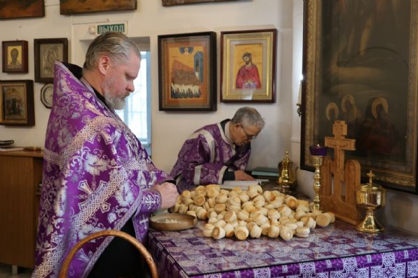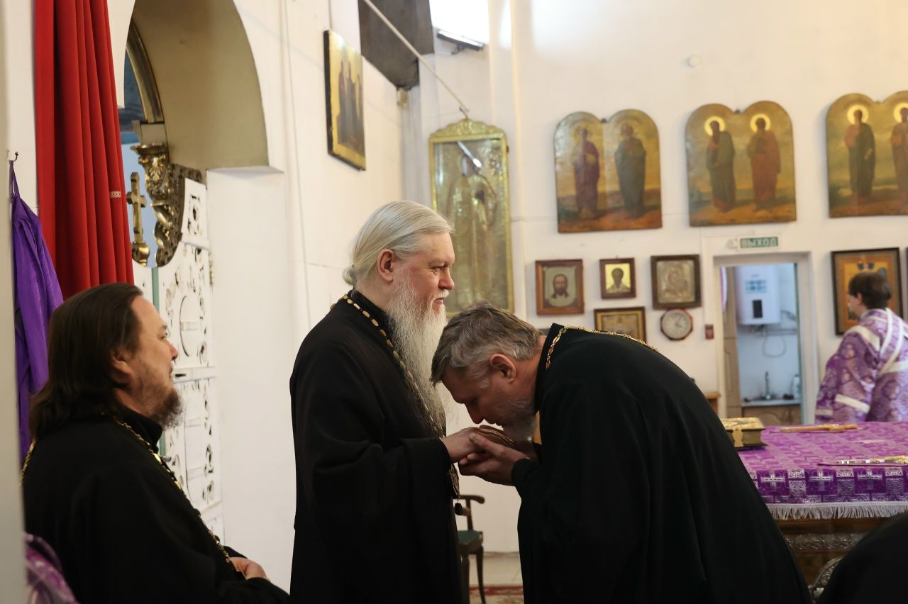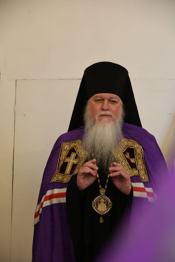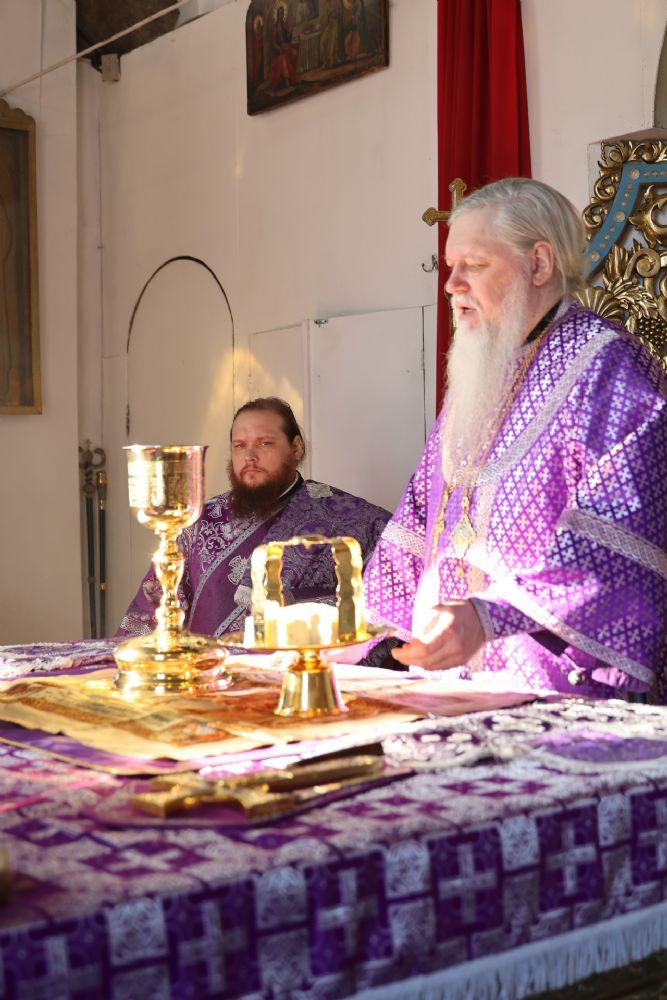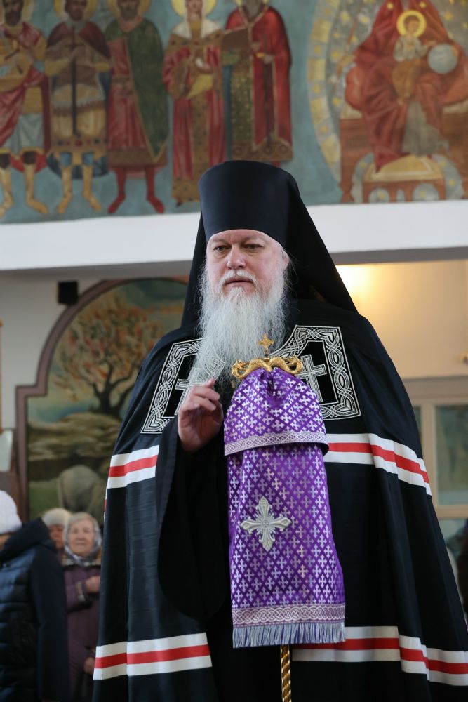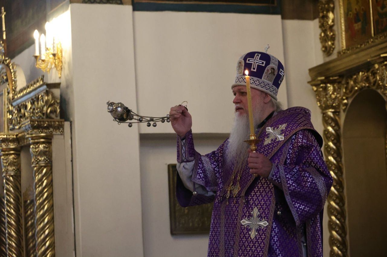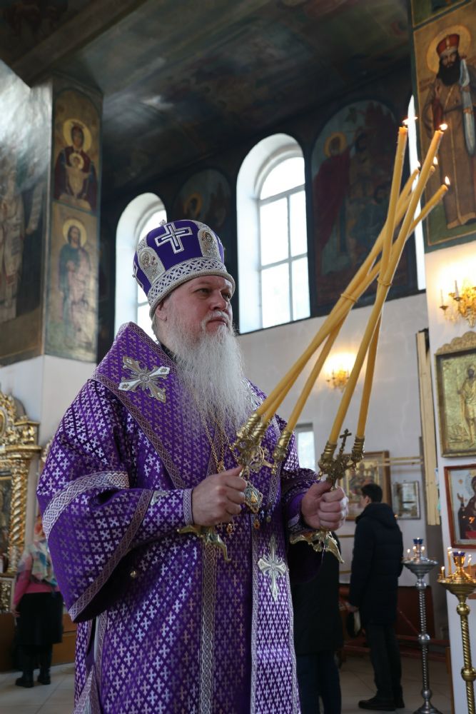 Его Преосвященству сослужили клирики кафедрального собора иерей Николай Аникин, иеромонах Александр (Чеборов), иерей Сергий Першаков, иеромонах Питирим (Мосякин) и диакон Иоанн Захаров. Песнопения исполнял мужской хор «Артос» под управлением регента Владислава Болушевского.