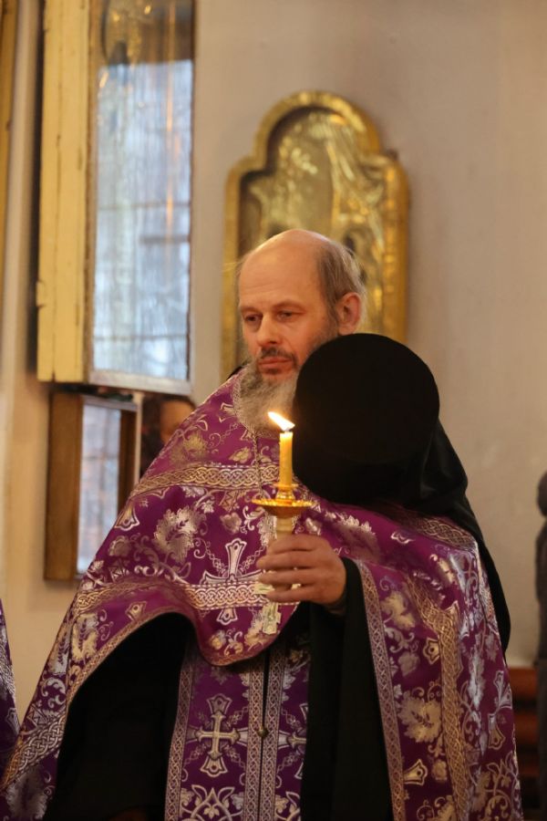 После Причастия священнослужителей владыка Феофан в алтаре поздравил клирика собора иерея Николая Аникина с 17-й очередной годовщиной священнической хиротонии, пожелав душевного и телесного здравия и помощи Божией в пастырском служении на многие и благие лета.