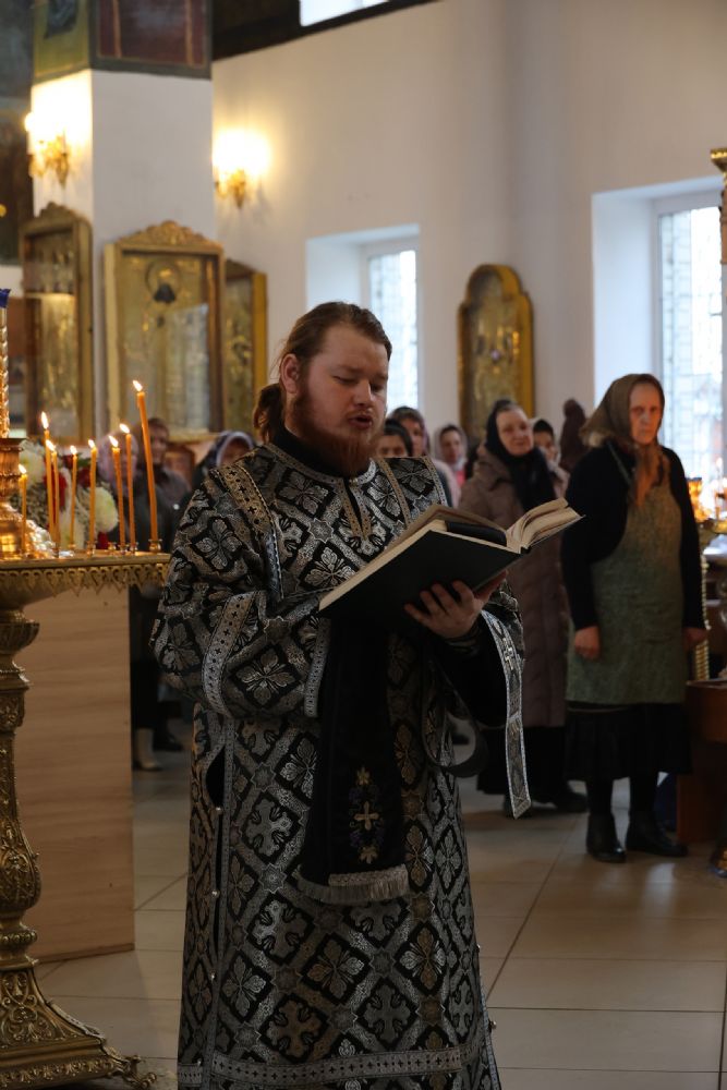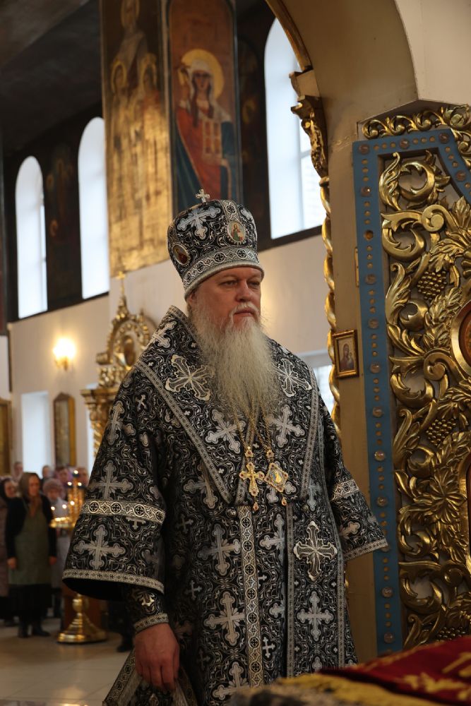 Его Преосвященству сослужили клирики кафедрального собора иерей Николай Аникин, иеромонах Александр (Чеборов), иерей Иоанн Лапшинский, иерей Сергий Першаков, иеромонах Питирим (Мосякин), диакон Иоанн Захаров, диакон Александр Викторов. Песнопения исполнял архиерейский хор под управлением Нины Коноваловой.