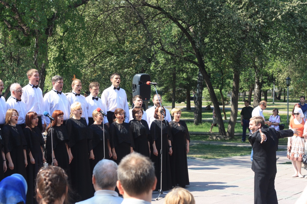 Открыл фестиваль Камерный хор Новосибирской государственной филармонии под управлением народного артиста России Игоря Юдина. Выступление хора сразу настроило всех участников, это был и своеобразный пролог, и поздравление с Днями славянской письменности и культуры, которые еще празднуются в Новосибирске. «Славься» М.И. Глинки, молитва, песни Е. Крылатова прозвучали на одном дыхании.