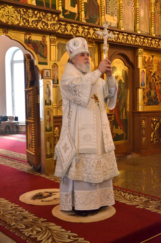 По окончании богослужения Архипастырь сердечно поздравил наместника монастыря архимандрита Стефана (Сексяева), насельников обители и прихожан с престольным праздником и обратился с проповедью: