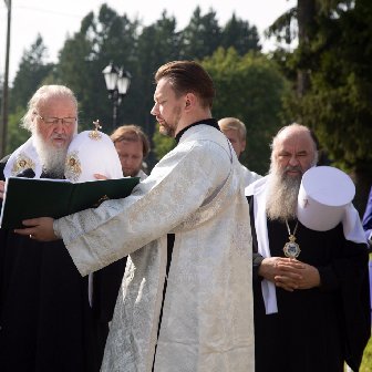 Предстоятель поблагодарил всех, кто трудился над воссозданием подворья. В дар новоосвященному храму он передал икону священномученика Константина Богородского, поскольку в память новомучеников Церкви Русской освящен нижний храм подворья.