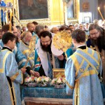 По окончании литургии архиереи в сослужении духовенства совершили перед ковчегом молебен с чтением акафиста Пресвятой Богородице.
