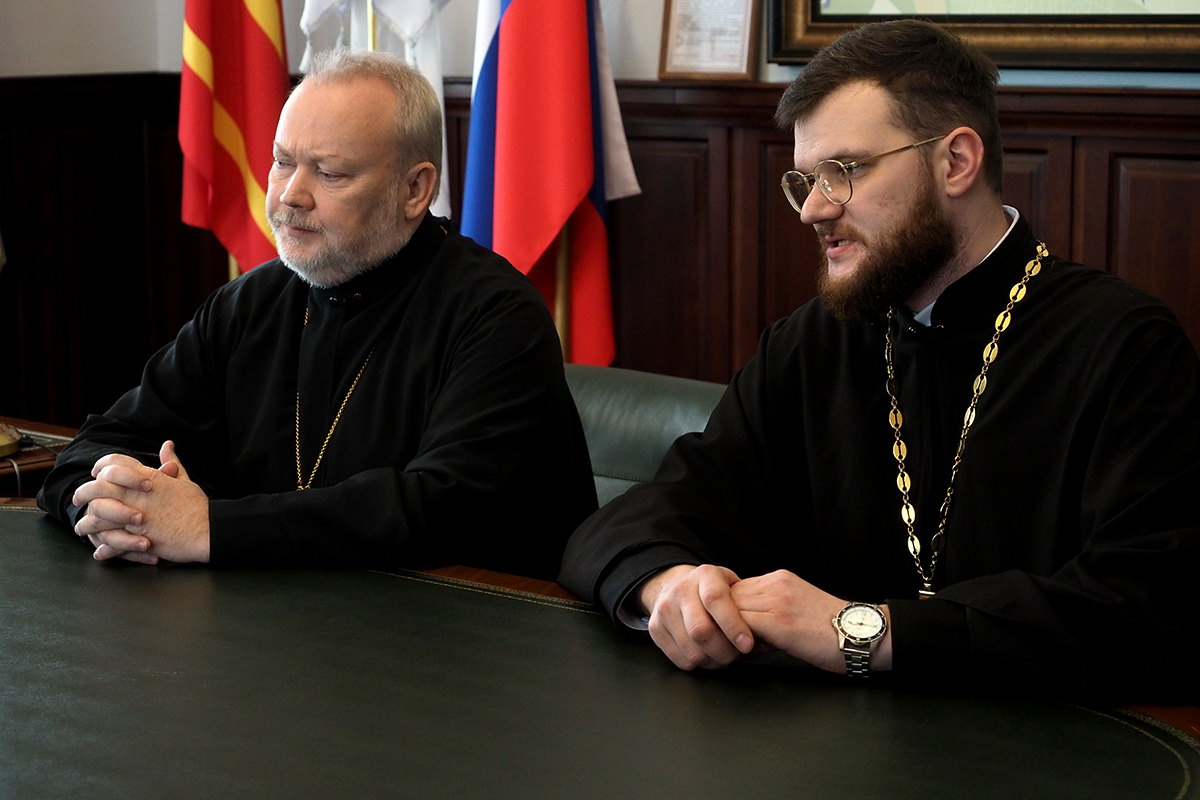Ректор СПДС, митрополит Смоленский и Дорогобужский Исидор тепло приветствовал минских гостей, рассказав им об истории Смоленской семинарии и о современной жизни духовной школы.