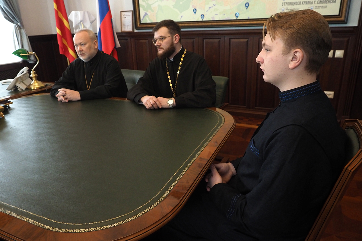 13 февраля 2023 года в Управлении Смоленской епархии состоялась встреча митрополита Смоленского и Дорогобужского Исидора с делегацией из Минской духовной семинарии.