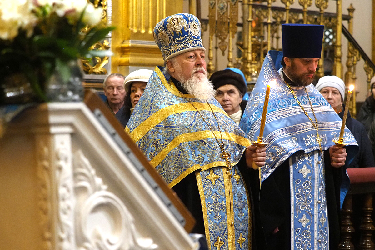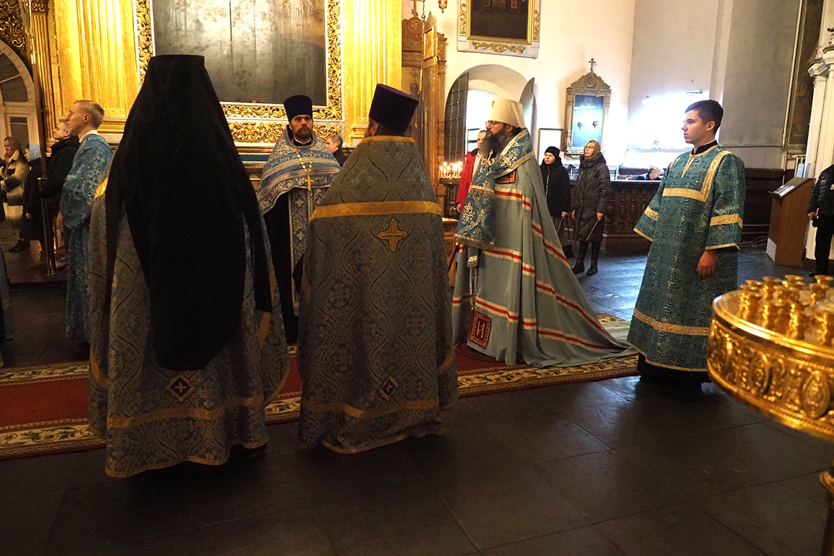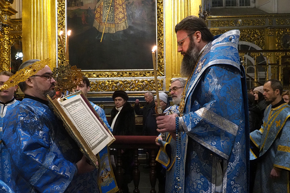 В праздничный вечер Высокопреосвященнейшему Владыке сослужили секретарь Смоленского епархиального управления, настоятель кафедрального храма иерей Владислав Баган, клирики Свято-Успенского собора.