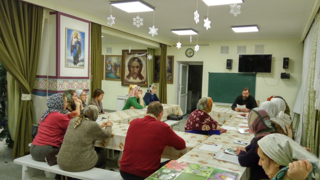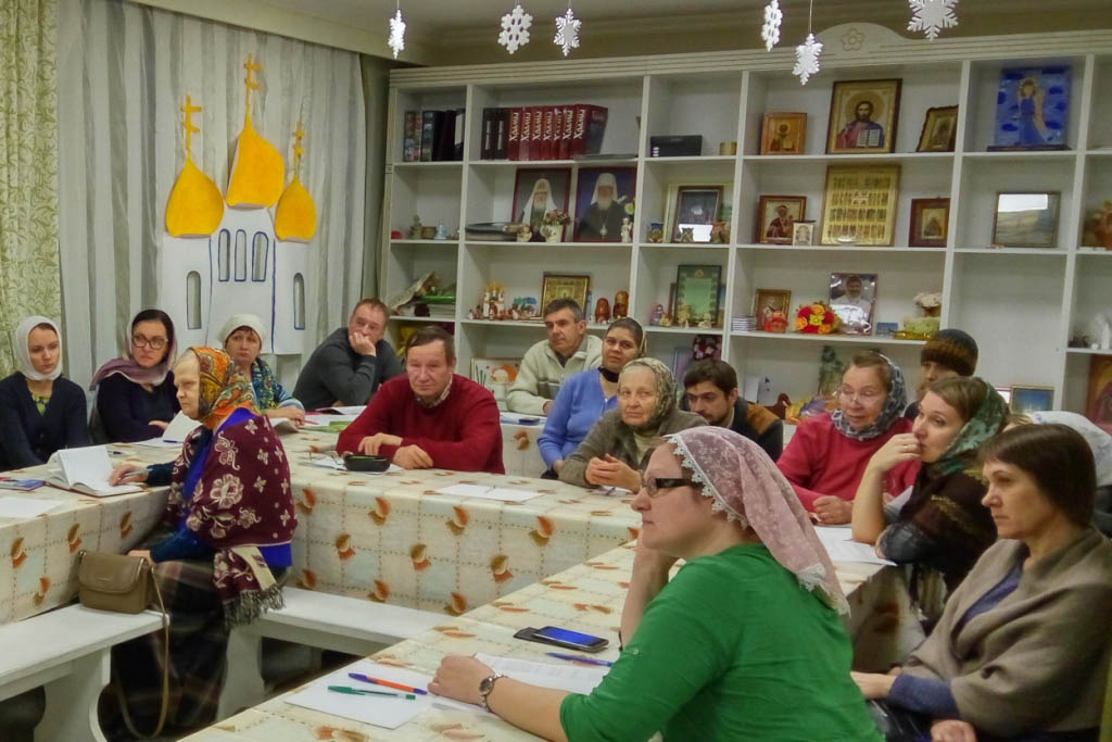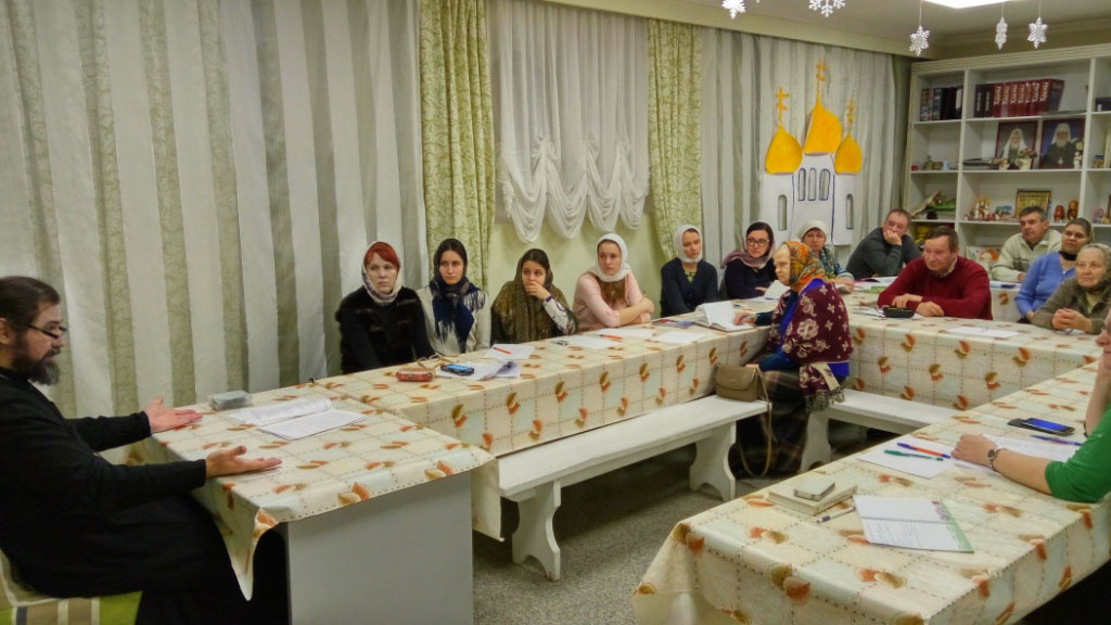 В цокольном этаже Никольского храма г. Тюмени по ул. Моторостроителей , 1а, в последнюю пятницу каждого месяца, в 18.00 проходят семинары для родителей, бабушек и дедушек, которые проводит иерей Сергий Кабанов, клирик храма. Очередной из семинаров для родителей состоялся 27 января с обсуждением книги Клайв Льюис «Расторжение брака».