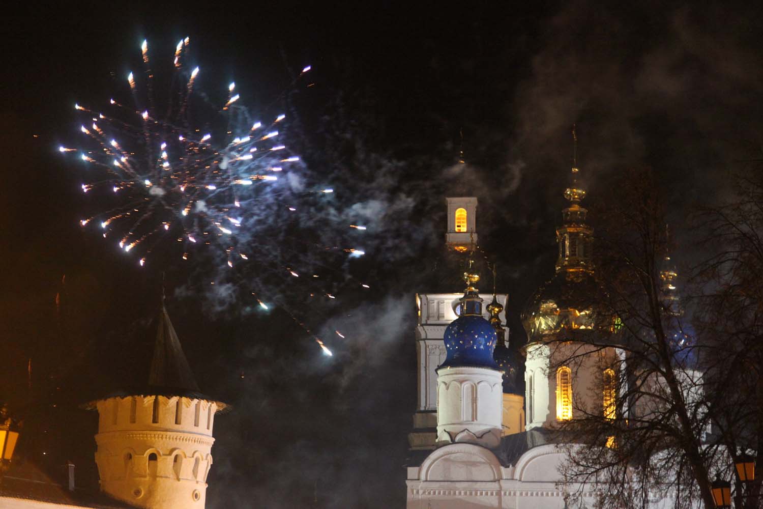 После Крестного хода и службы состоялся праздничный фейерверк.