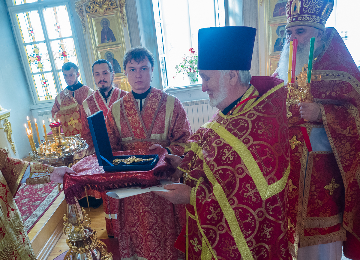 Поблагодарив Владыку и «всех братьев, с которыми служил», за добрые пожелания, отец Пётр признался, что переполнен радостью от того, что Господь в такие годы даёт ему силы служить у Своего престола.