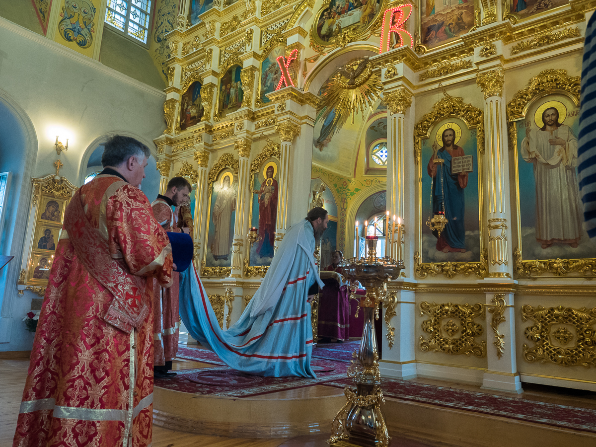 Владыка Ростислав поблагодарил за труды отца Дионисия и всех, кто участвует в благом деле, а верующие смогли увидеть под куполом церкви ожившие под кистью иконописцев картины Священного Писания, напоминающие о Воскресении Христовом.