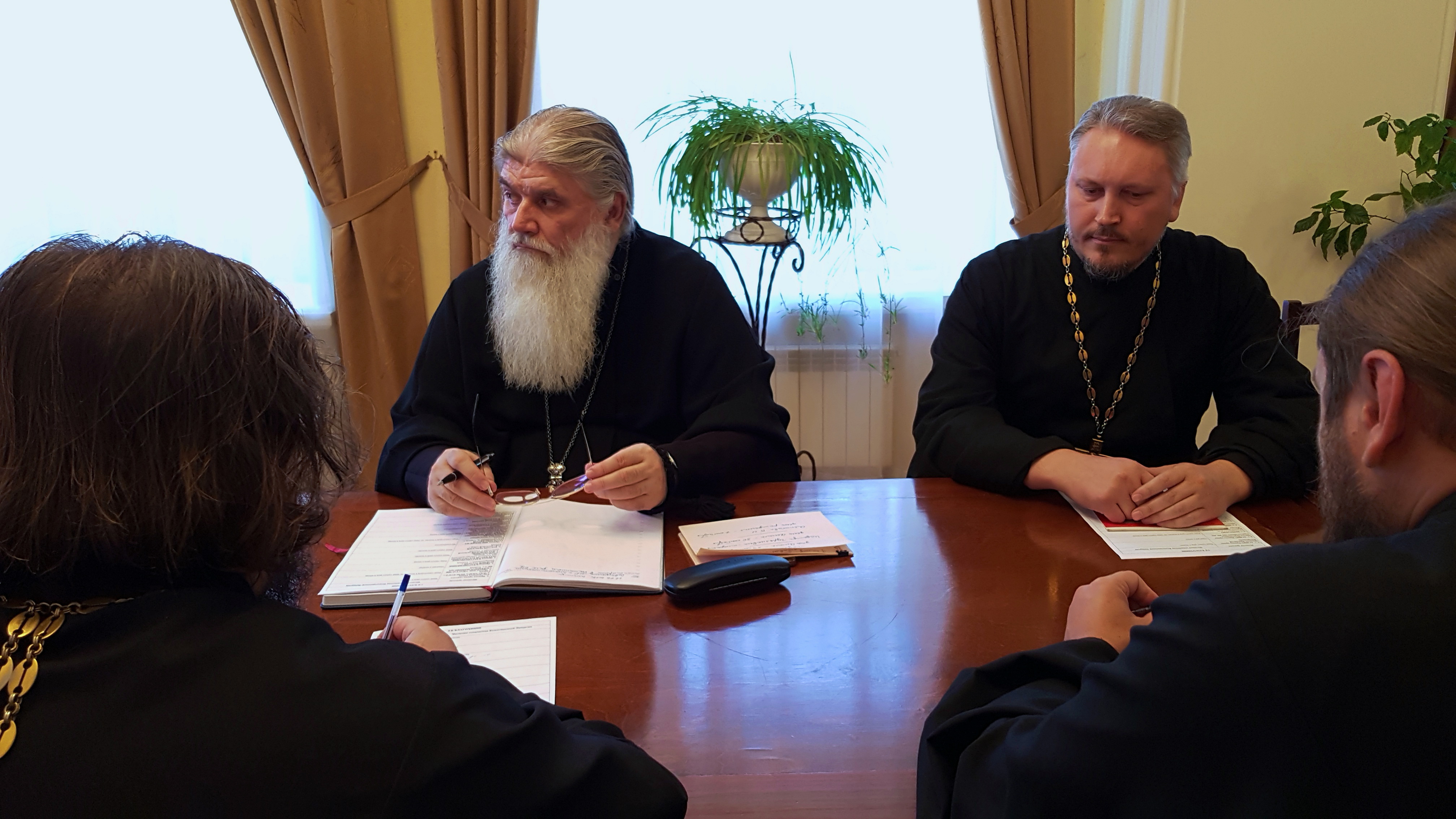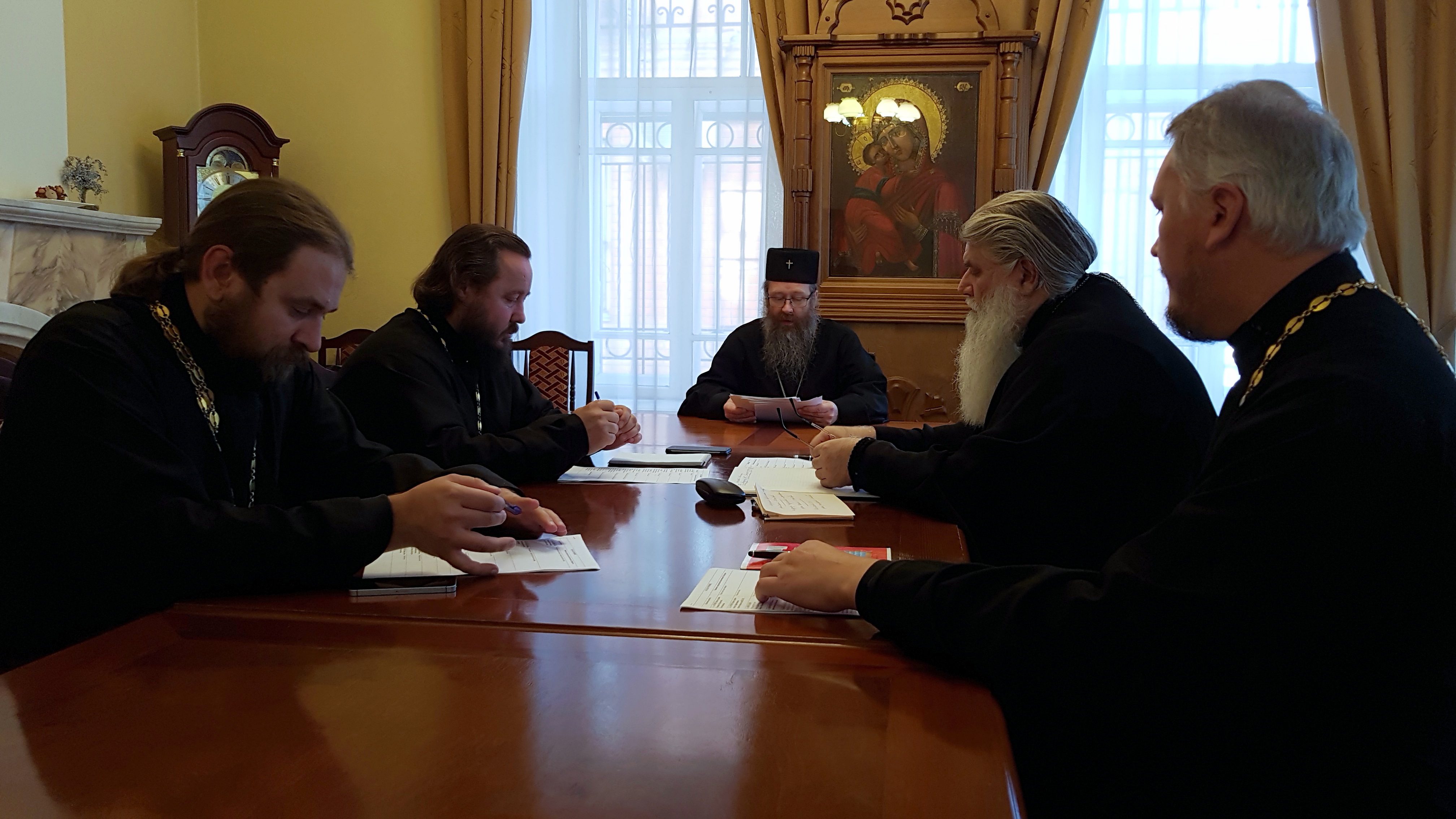 |  |  | 28 сентября в Томском епархиальном управлении под председательством митрополита Томского и Асиновского Ростислава состоялось рабочее собрание благочинных Томской епархии. В заседании приняли участие благочинные: Градо-томского благочиния архимандрит Иосиф (Еременко), Томского района протоиерей Дионисий Степанов, Восточного благочиния протоиерей Александр Никулин, Центрального благочиния протоиерей Александр Кондратенко. Началось собрание с общей молитвы, после которой Его Высокопреосвященство обратился к собравшимся с приветственным словом и огласил повестку предстоящего заседания. В ходе собрания обсуждались текущие вопросы епархиальной жизни, в частности, митрополит Ростислав обратил внимание на необходимость развития информационной деятельности путем создания официальных сайтов благочиний Томской епархии. Далее митрополит Ростислав заслушал отчеты благочинных о проделанной работе, обозначил ближайшие перспективы и задачи. В завершении собрания Его Высокопреосвященство поблагодарил участников заседания за понесенные труды и призвал на всех Божие благословение.    Пресс-служба Томской епархии