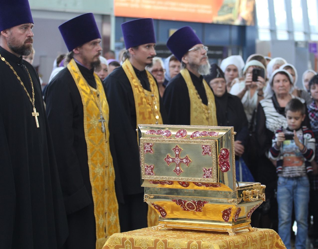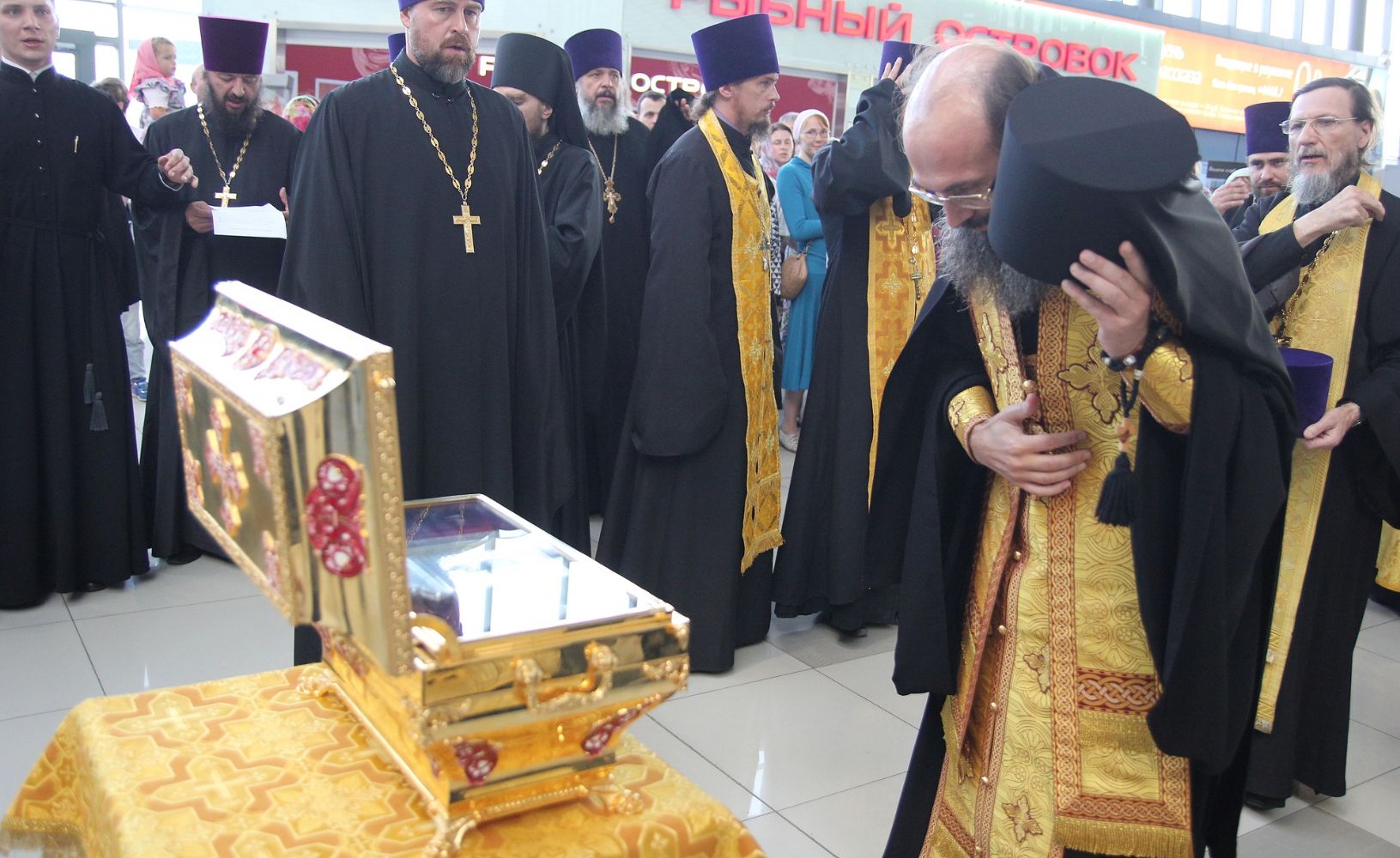 Из аэропорта святые мощи были доставлены в Покровский кафедральный собор для торжественной встречи. Митрополит Владивостокский и Приморский Вениамин возглавил в храме служение Соборного молебна. Торжественную встречу святыни посетил вице-губернатор Приморского края по вопросам внутренней политики Александр Ролик.