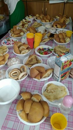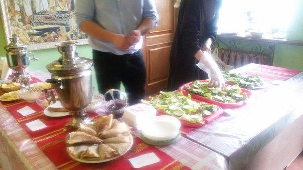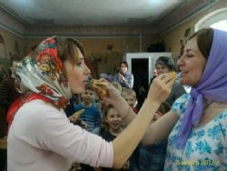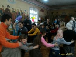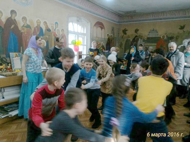 Ребята подготовили праздничную программу: пели частушки, танцевали, играли в подвижные игры. Все прихожане угощались свежей выпечкой, блинами, сладостями и горячим чаем.