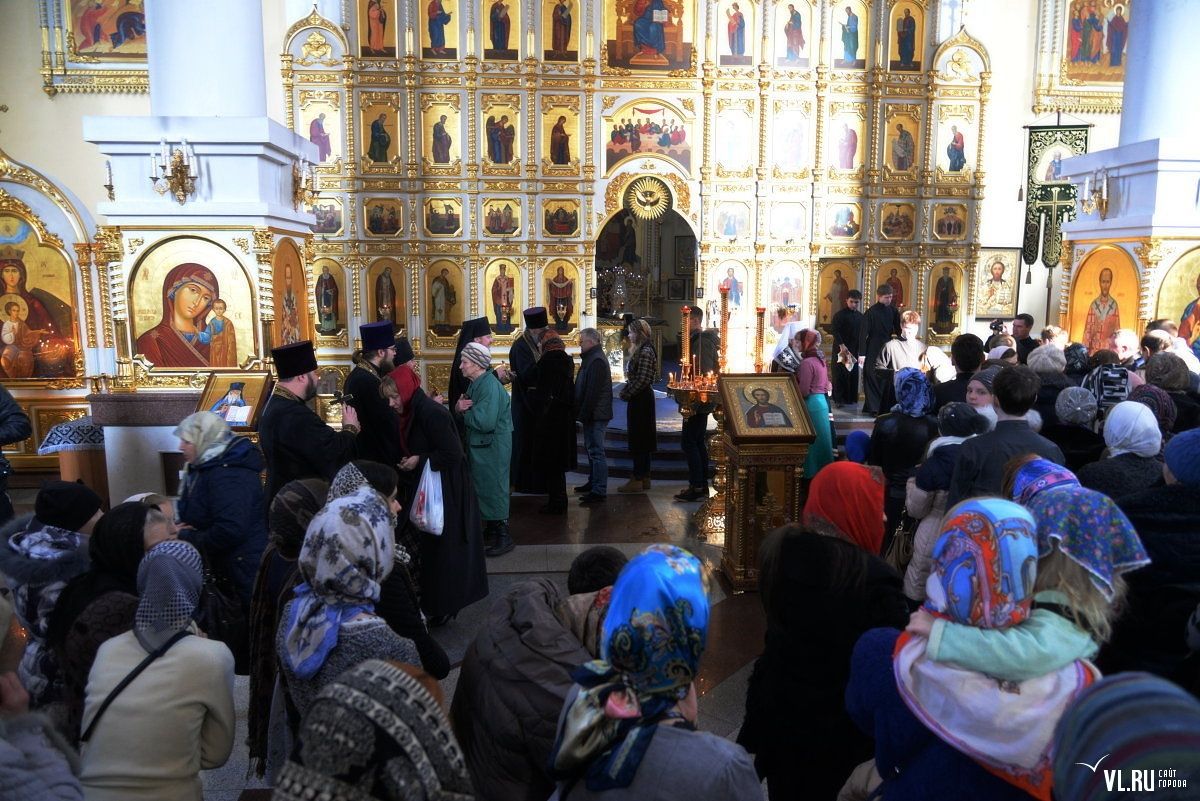 Владивосток. В воскресенье, 13 марта, в Покровском кафедральном соборе митрополит Владивостокский и Приморский Вениамин совершил вечернее богослужение с Чином прщения.