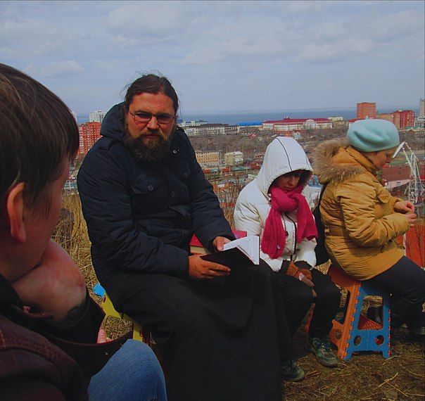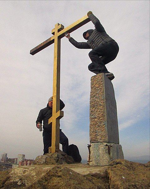 Владивосток. 3 апреля Крестопоклонная неделя. Православная молодёжь Владивостока по окончании Божественной литургии отправилась на полуостров Эгершельд, на сопку Крестовую. Молебен отслужил клирик Успенского храма Владивостока иерей Илия Точуков. После молебна молодые люди убрали территорию, покрасили и укрепили деревянный крест.