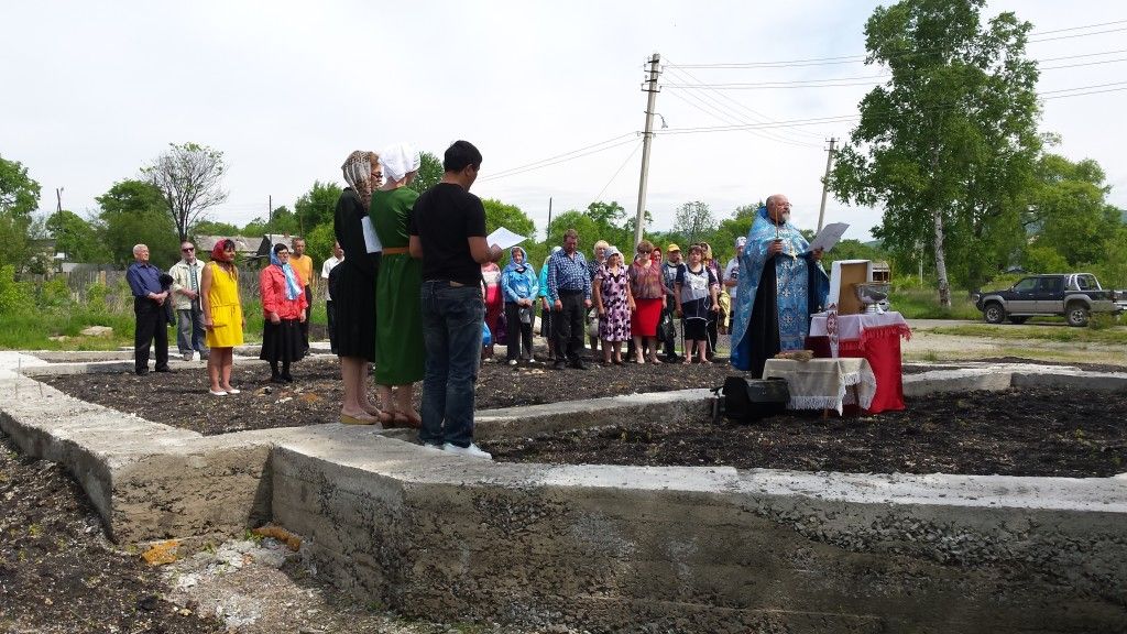 Реттиховка. 3 июня 2016 года благочинный VI округа Владивостокской епархии настоятель храма Вознесения Господня села Спасское митрофорный протоиерей Владимир Капитанюк совершил молебен с чтением акафиста Божией Матери в честь Ея иконы, именуемой Владимирской на месте стройки храма в поселке Реттиховка.