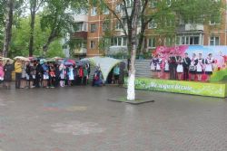 Затем, несмотря на весеннюю непогоду, на открытой площадке гимназии прошел концерт. К празднованию Дня Славянской письменности и культуры состоялось премьерное исполнение песни, написанной композитором и священником Максимом Романенко. Вокальную композицию исполнили автор и гимназисты.