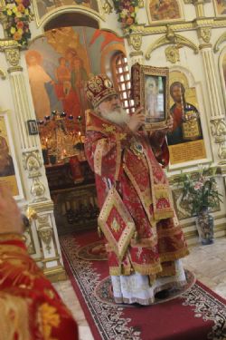Со святым образом участники торжеств прошли Крестным ходом вокруг Кирилло-Мефодиевского храма.