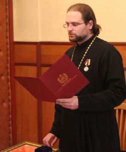 - Архиерейскую грамоту — члену Попечительского совета Войсковой Православной миссии Денису Алексеевичу Родионову.