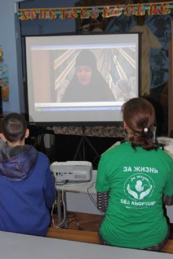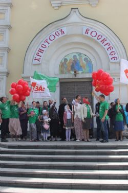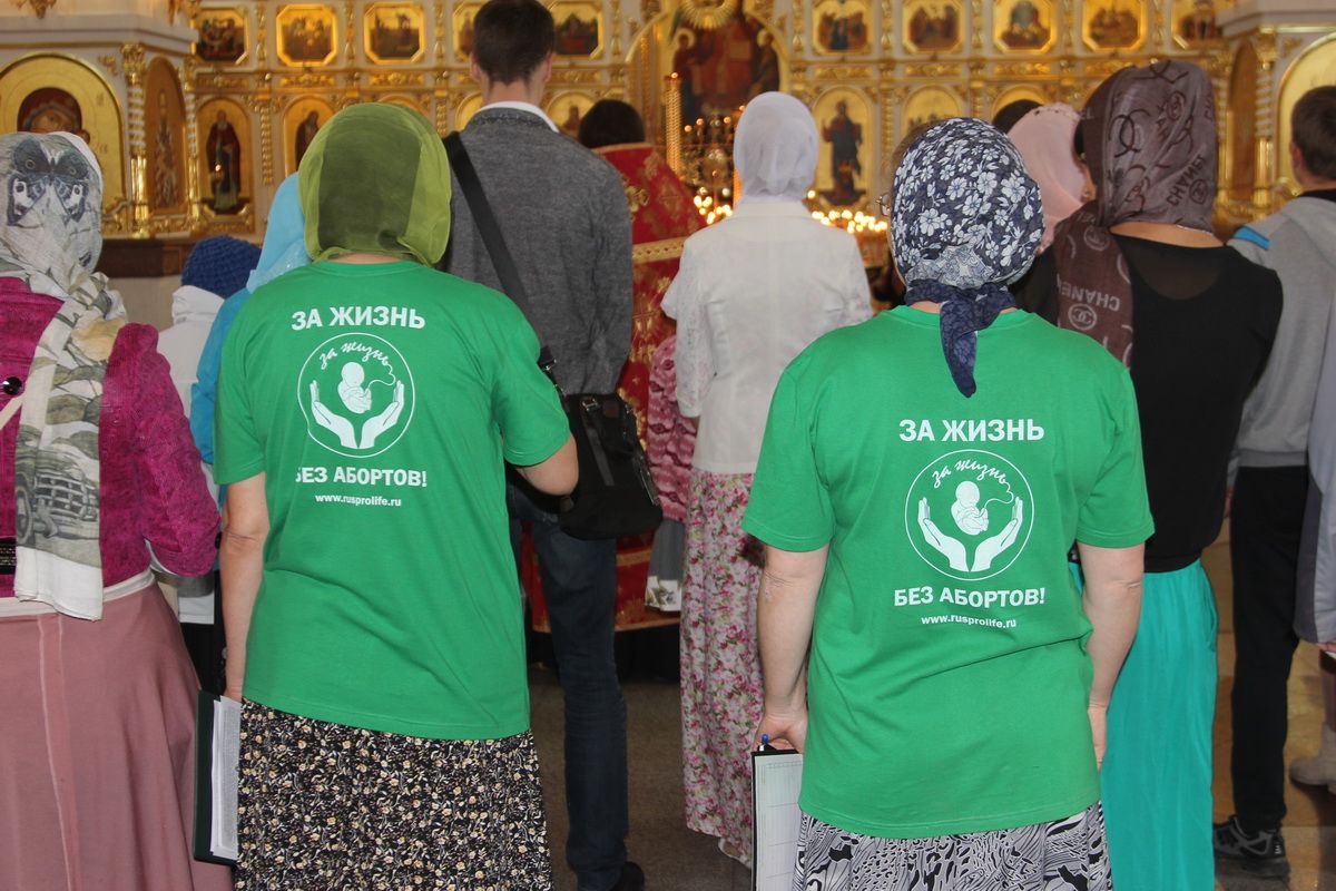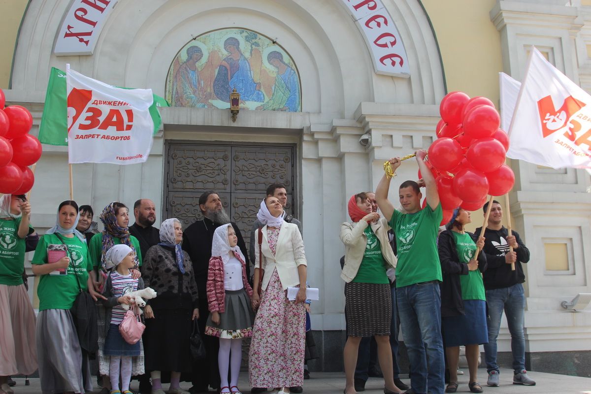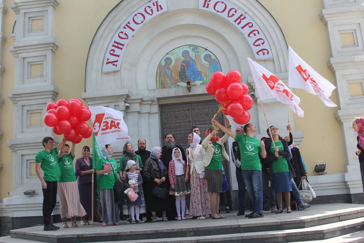 Затем на ступенях храма была проведена Акция против абортов. В небо каждую минуту выпускалось по два шара (число абортов в минуту в стране). Добровольцы собирали подписи против абортов. На территории прихода работала тематическая фотовыставка и кинолекторий с показом профилактических фильмов. А праздничную составляющую программы завершила трапеза со сладостями и чаем.