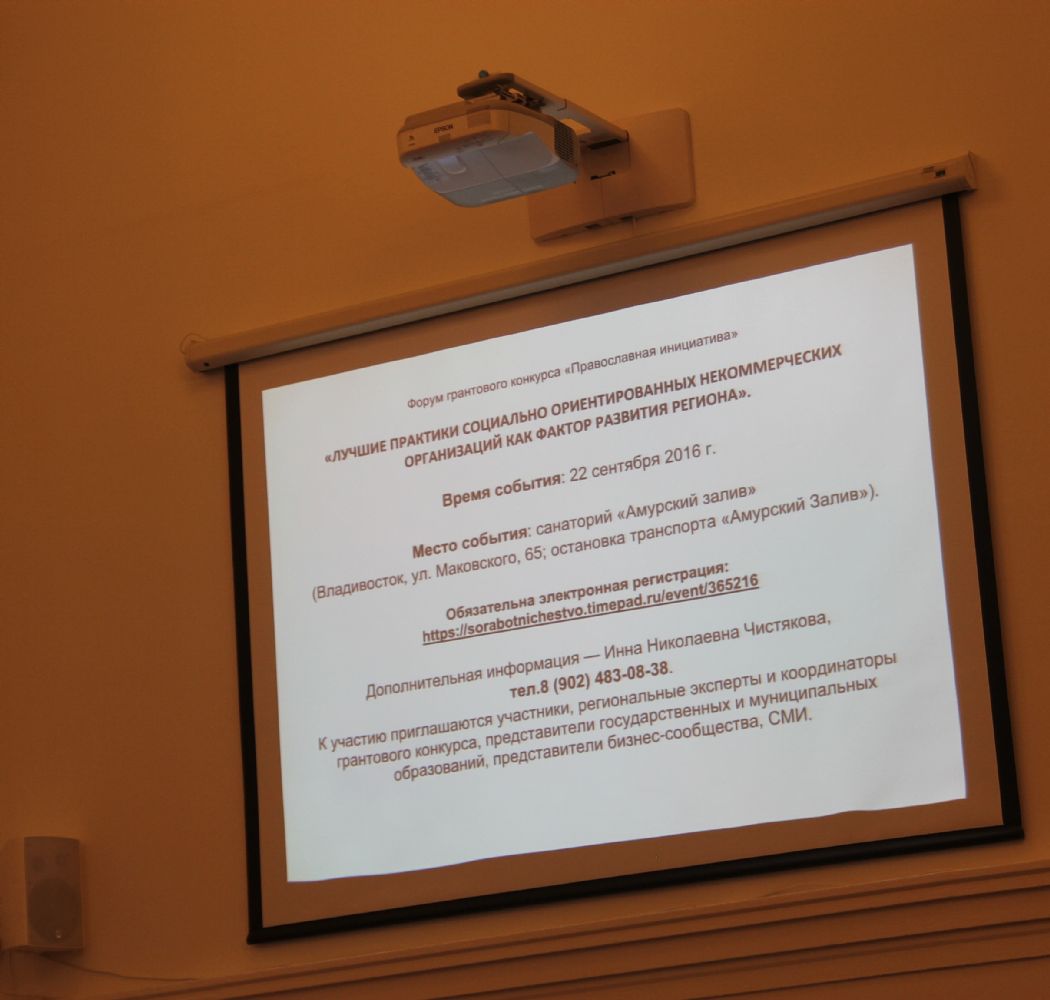 Как пример в контексте социального партнерства владыка Иннокентий привел предложение Церкви к обществу — об участии в грантовом конкурсе «Православная инициатива». 22 сентября 2016 года в пригороде Владивостока, в санатории «Амурский залив» (ул. Маковского, 65) состоится обучающий форум, посвященный участию в грантовом конкурсе «Православная инициатива», а также практике социально ориентированных организаций по развитию региона. К участию в обучающем форуме приглашаются представители светских и религиозных организаций, СМИ.