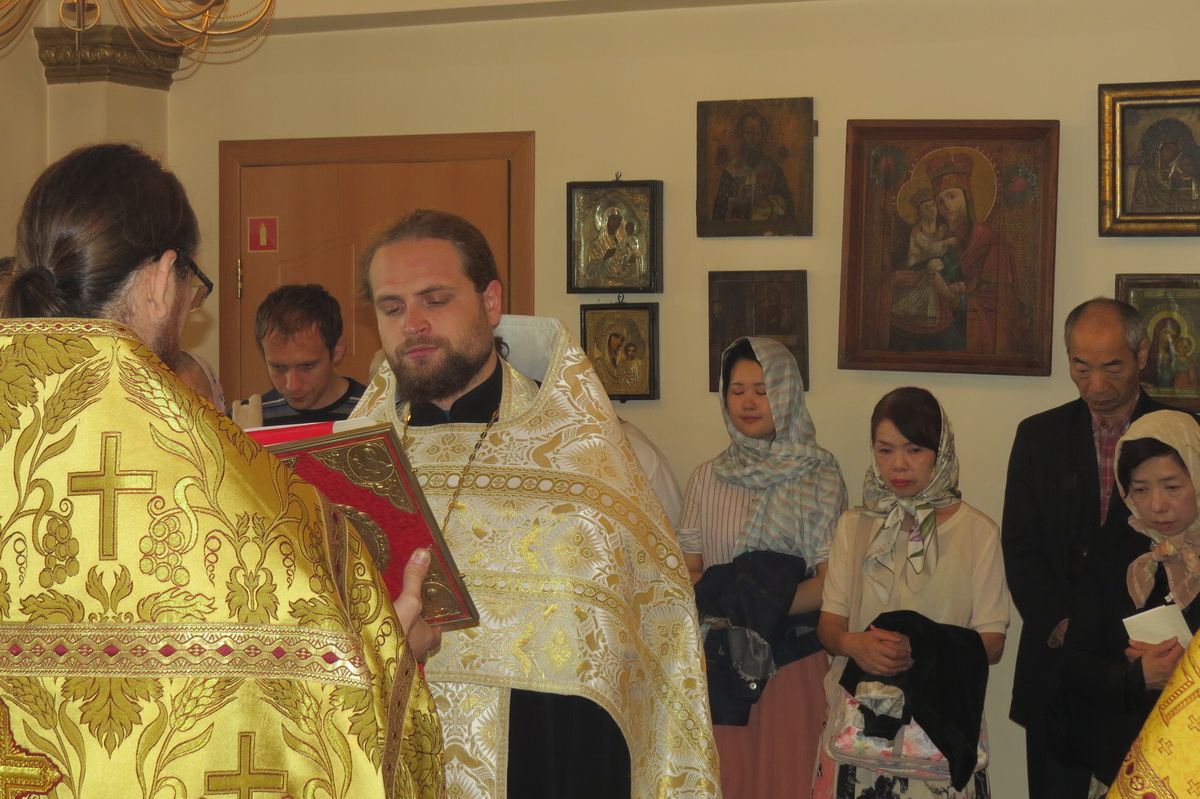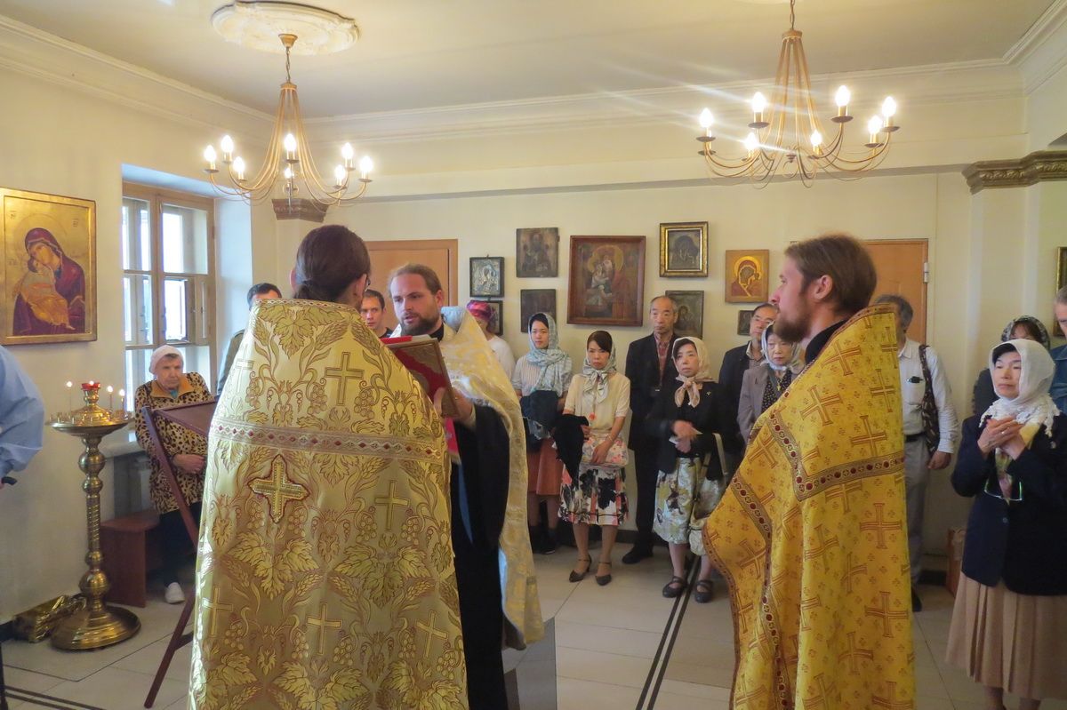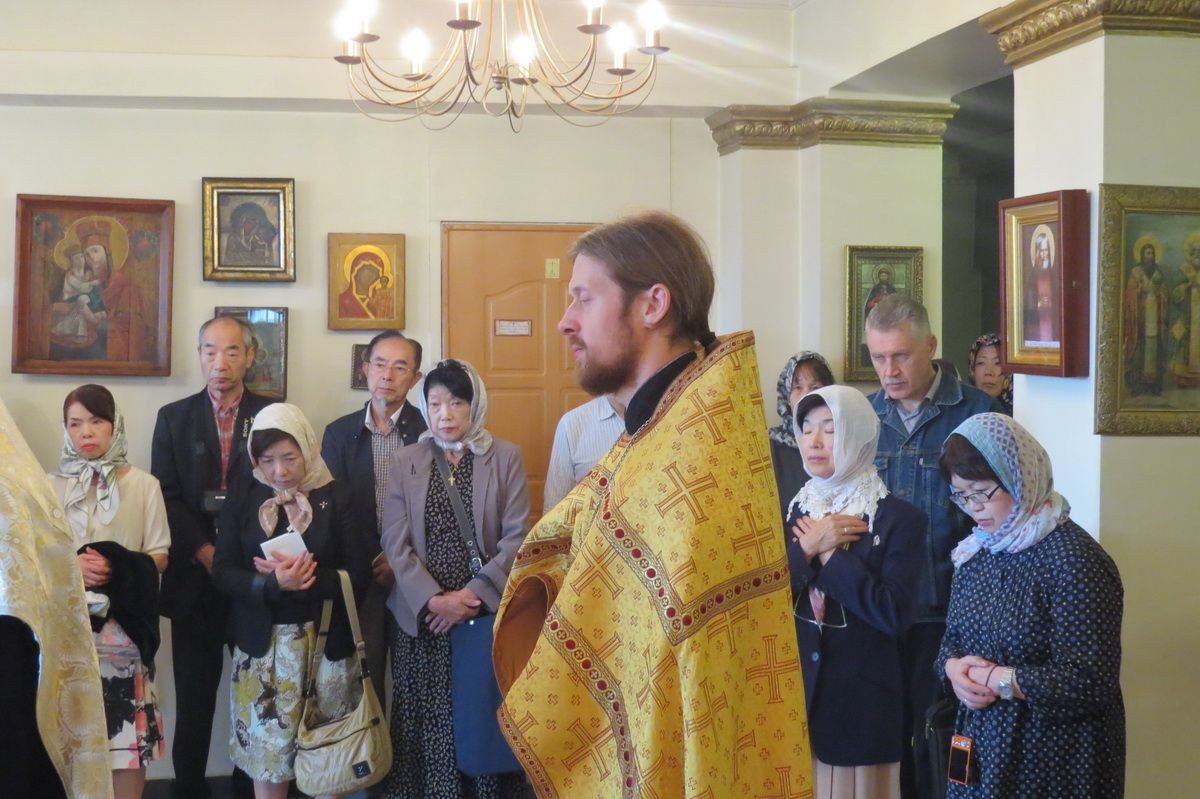 Утром 24 сентября группа паломников из Японии приняла участие в молебне в приделе святителя Николая Японского храма в честь Казанской иконы Божией Матери.