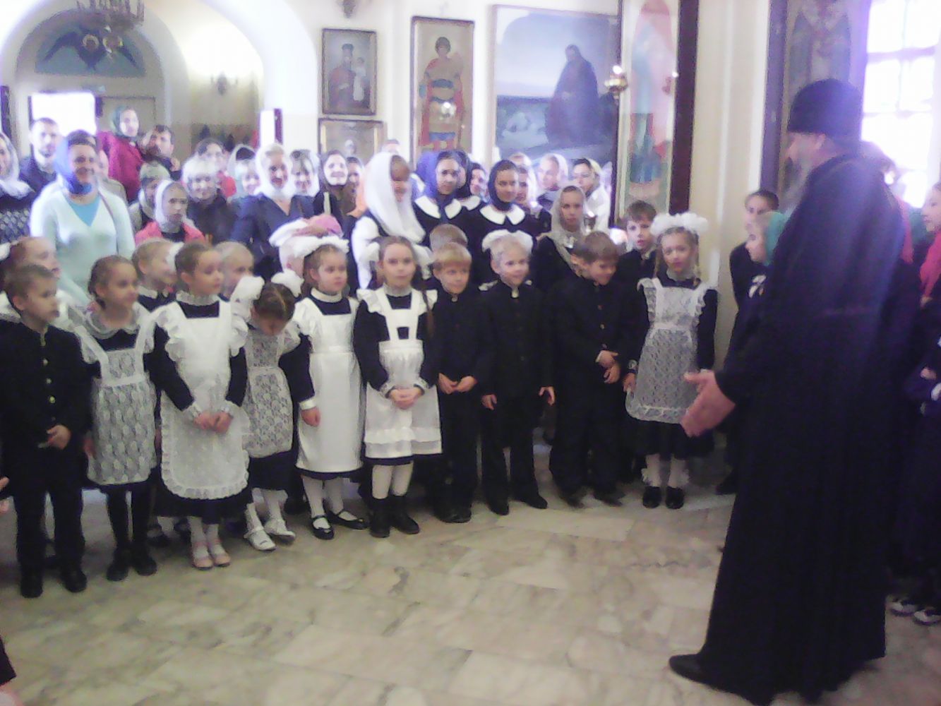 День начался Божественной Литургией в в гимназическом храме святых равноапостольных Кирилла и Мефодия. По окончании настоятель храма и духовник гимназии протоиерей Игорь Талько отслужил молебен небесному покровителю вновь образованной общины — святому преподобному Серафиму Саровскому чудотворцу, испросив у него заступничества перед Богом и помощи в нелёгком деле обучения.