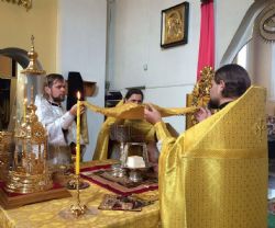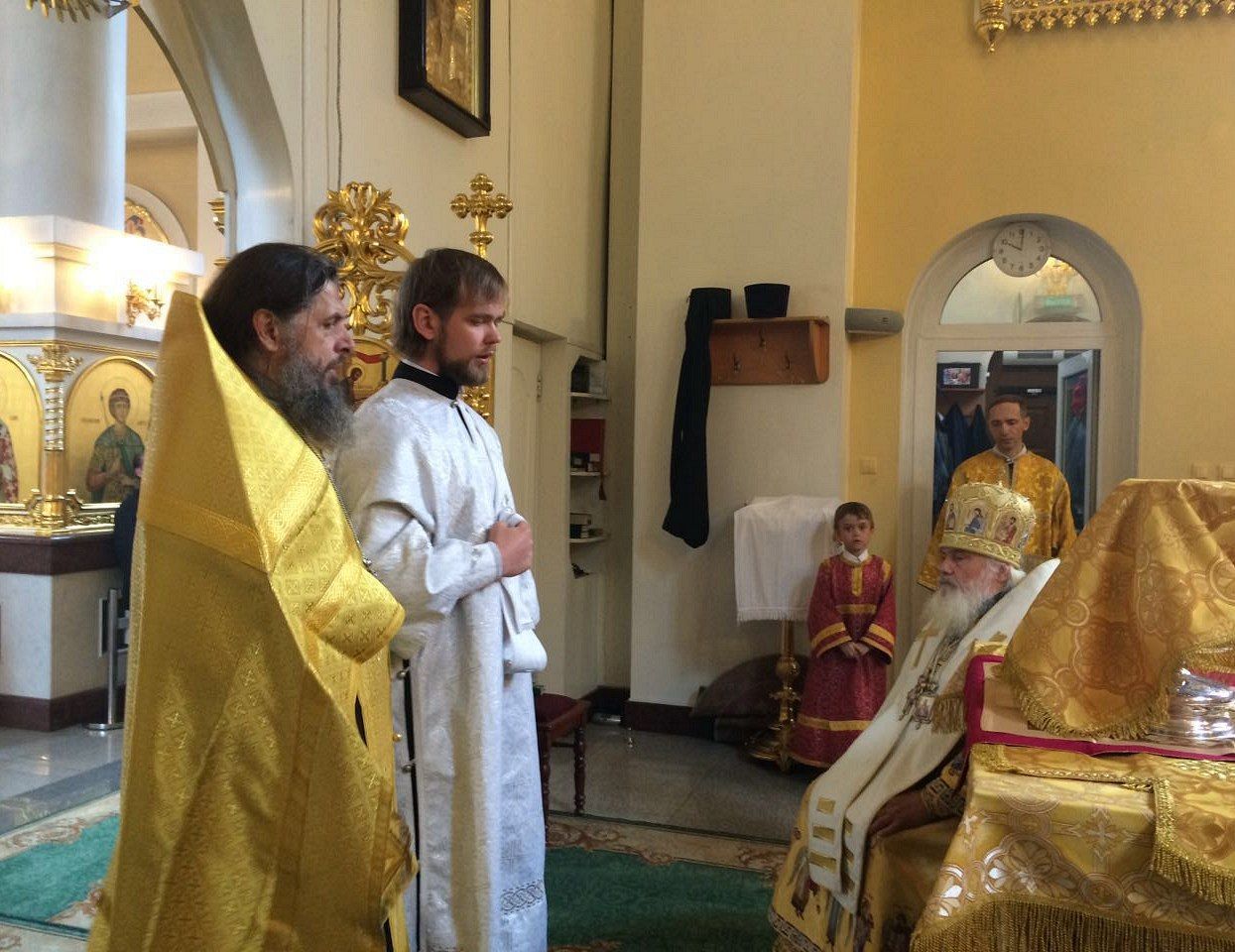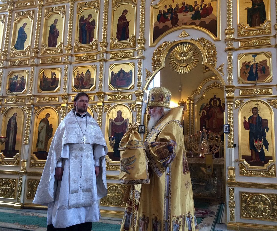 За Литургией Высокопреосвященнейший владыка совершил священническую хиротонию — рукоположил во иерея клирика Богоявленского храма г.Артёма диакона Даниила Есакова.