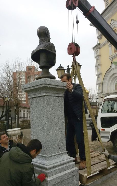 - Бронзовый бюст Николая II изготовлен и установлен по инициативе Оргкомитета по увековечению памяти пребывания во Владивостоке Цесаревича Николая Александровича, при большом содействии наших московских друзей из Православной Войсковой Миссии. Автор бюста — скульптор Андрей Вячеславович Клыков, сын знаменитого скульптора В.М.Клыкова. А гранитный постамент под бюст изготовил и передал в дар Оргкомитету Марат Ваникович Айрапетян, директор ООО «Гравитер».