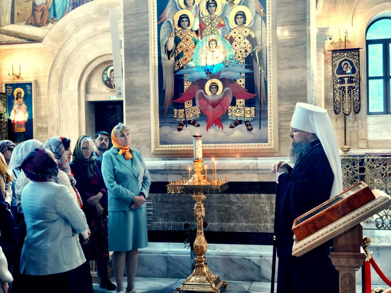 По традиции владыка Павел провёл для гостей экскурсию. Уже на входе педагогам разъяснили все слова, стоящие в именовании Спасо-Преображенского кафедрального собора. Экскурсанты узнали о празднике Преображения Господня, в честь которого он освящен, и о евангельском событии на горе Фавор, которое его прообразует. Затем было ещё несколько остановок: комментируя сюжеты различных фресок и икон, митрополит Павел вместе со слушателями совершил драматичное путешествие в историю Книги Бытия и Нового Завета, заодно проясняя духовные смыслы — и отдельной человеческой жизни, и современных событий в целом.