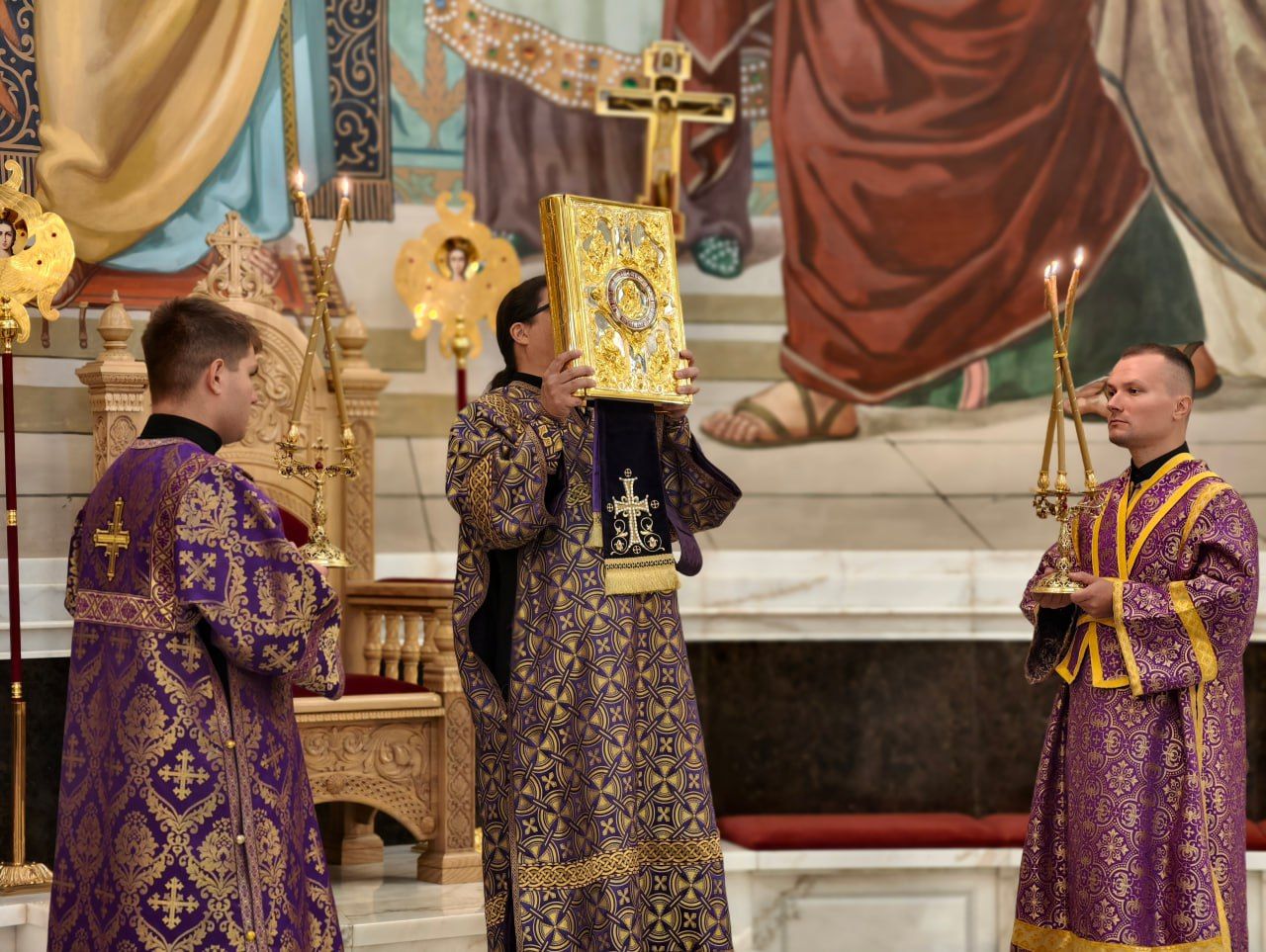 Правящий архиерей возглавил всенощное бдение праздника Воздвижения в Спасо-Преображенском соборе