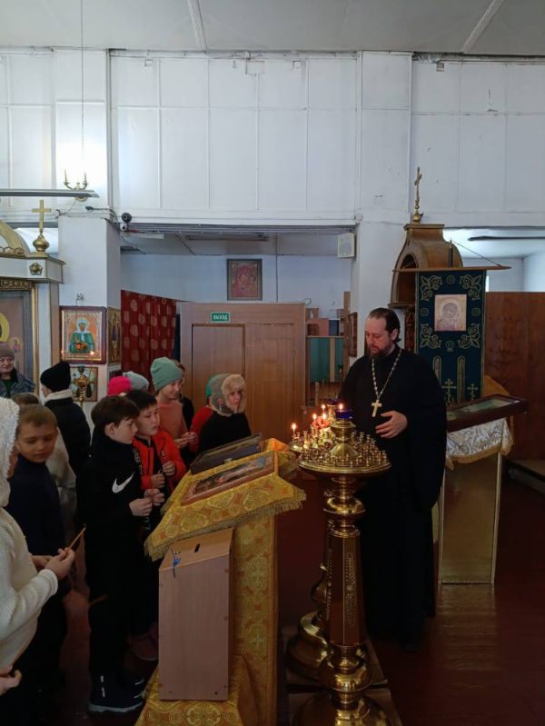 Отец Андрей рассказал историю прихода и об особо почитаемых святынях храма. Батюшка научил детей, как правильно возжигать свечи и ставить их в подсвечник. Многие ребята впервые посетили дом Божий.