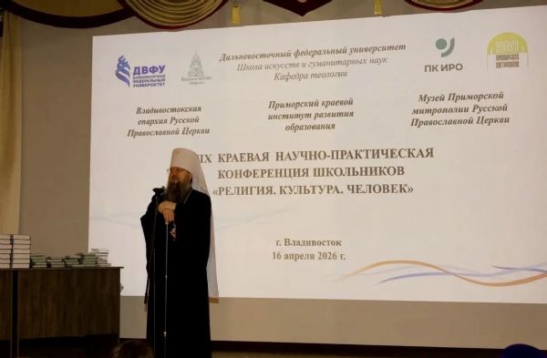 16 апреля в Спасо-Преображенском кафедральном соборе г. Владивостока состоялась XIX краевая научно-практическая конференция школьников «Религия. Культура. Человек». Мероприятие прошло в рамках регионального этапа XXXIV международных образовательных Рождественских чтений, посвящённых теме «Просвещение и нравственность: формирование личности и вызовы времени».