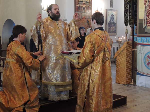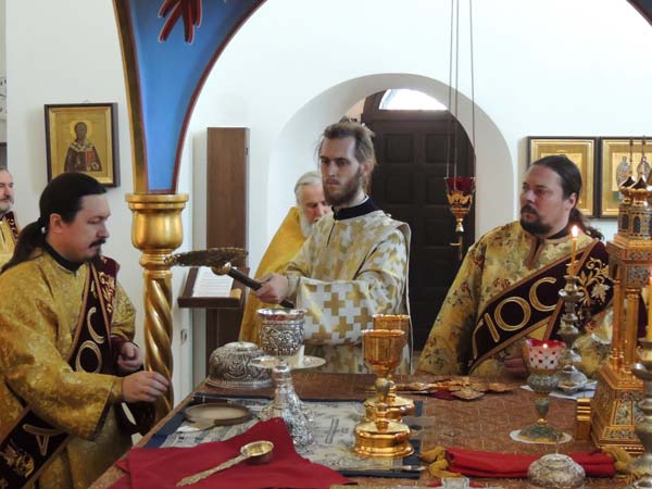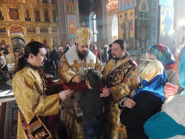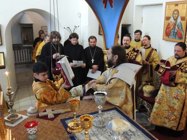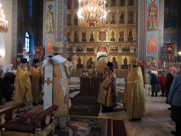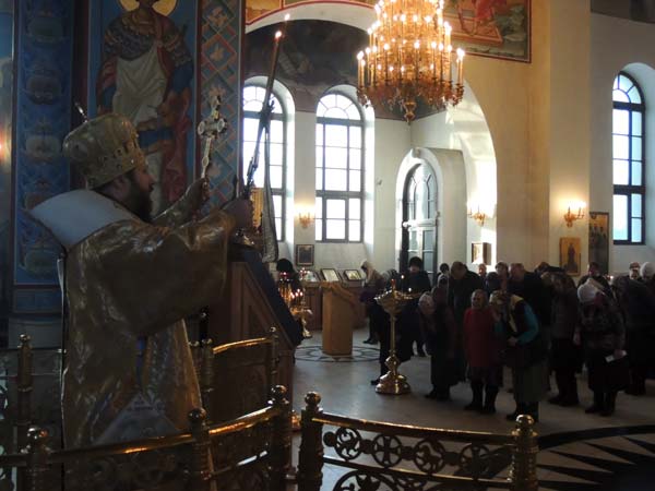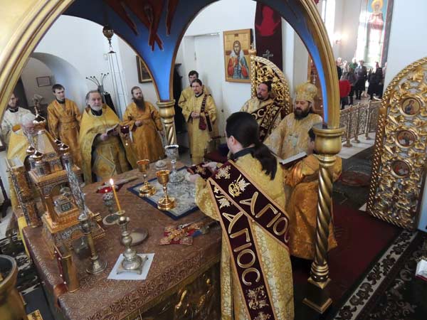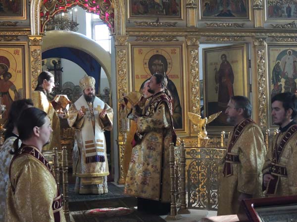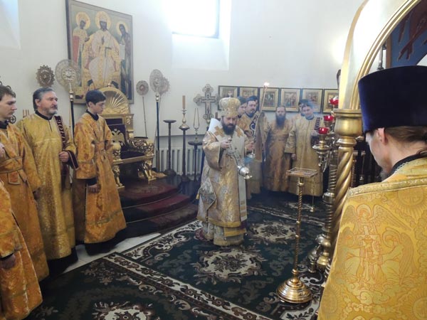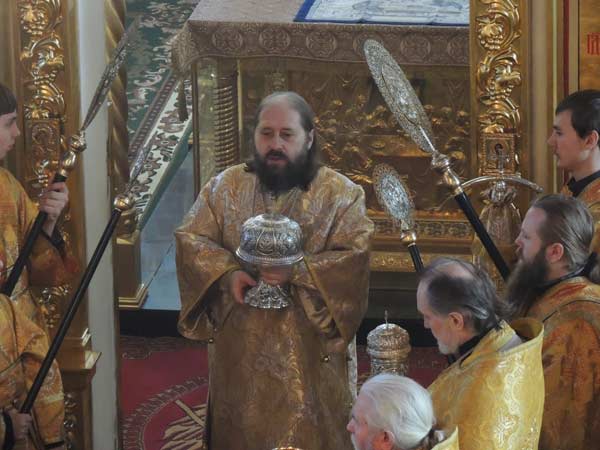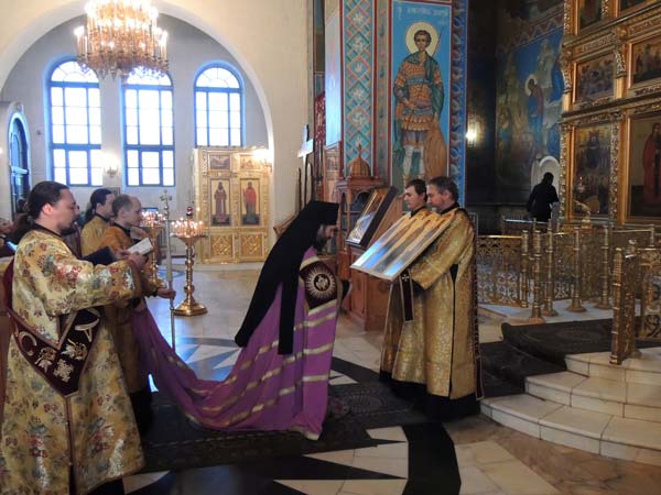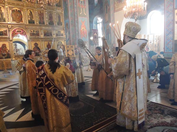 Архиерею сослужили секретарь епархиального управления и настоятель собора протоиерей Сергий Тимонов, протоиерей Иоанн Будзар, Иоанн Комаров, и священник Павел Кузьмин. Диаконский чин составили протодиакон Андрей Ермаков, диаконы Дионисий Ворошилов, Евгений Мотькин, Валерий Истомин, Константин Плешков и иеродиакон Нестор (Рыбин). Богослужебные песнопения исполнил архиерейский хор под управлением Марии Ермаковой.
