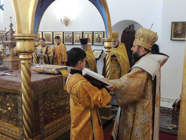 За Литургией Управляющий епархией совершил хиротонию алтарника собора Николая Пугина во диакона к Спасо-Преображенскому собору.