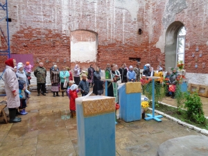 Над местным храмом нет ни куполов, ни крыши. Над алтарем местные жители соорудили перекрытие. «Когда мы начали служить, шел дождь, в храме образовались лужи. Однако, несмотря на трудности, настроение у всех было воскресное, праздничное. Народ здесь живет очень простой, верующий. Несмотря на погоду они каждое воскресенье приходят в храм на совместную молитву», — добавил священник.