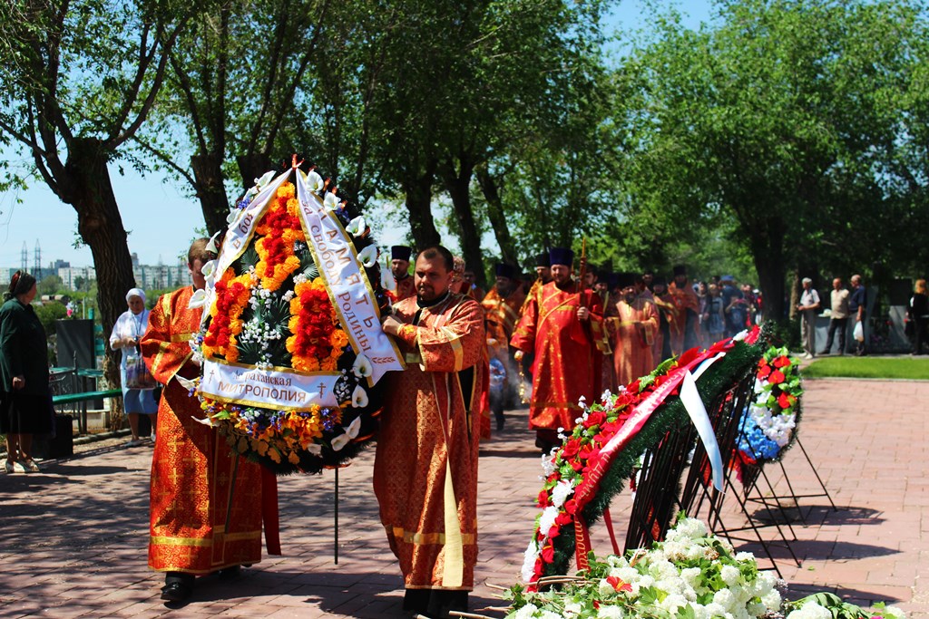 Торжественное шествие, в котором приняли участие духовенство и миряне Астраханской митрополии, началось у храма Рождества св. Иоанна Предтечи и закончилось у мемориала, где была отслужена панихида по павшим воинам и провозглашена «Вечная память вождем и воинам, жизнь свою за веру и Отечество положившим».