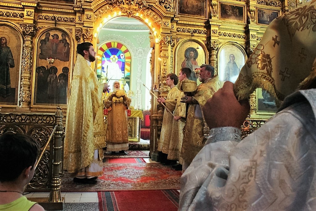 После запричастного стиха священник Андрей Желудков произнес проповедь. Митрополит Иона по окончании богослужения поздравил прихожан собора с воскресным днем.