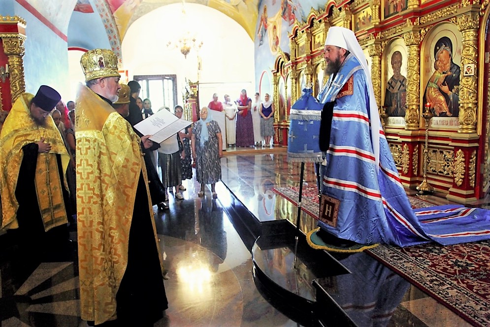 Поклонившись честным мощам астраханских святителей: Феодосия, Иосифа и Герасима, архипастырь совершил молебен на начало доброго дела.