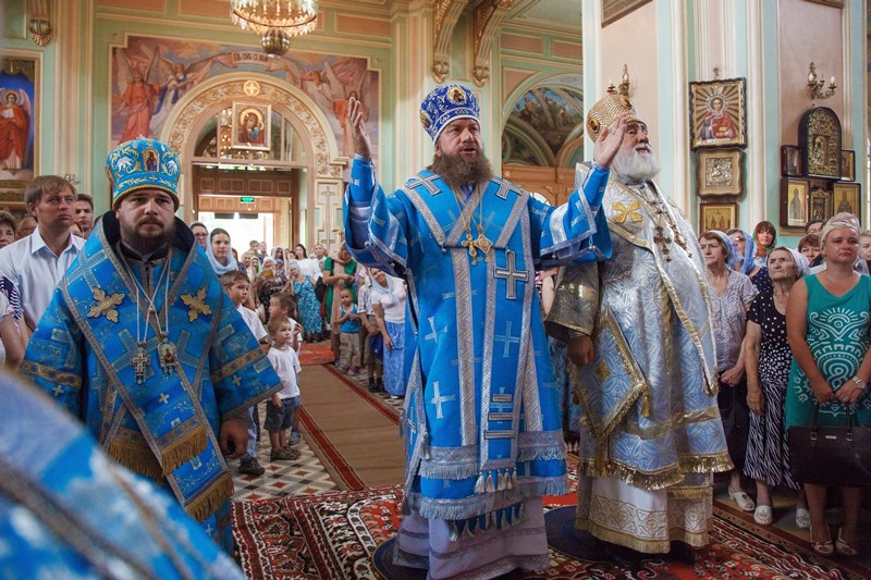 Архипастырям сослужили клирики епархии. После запричастного стиха иерей Илья Кишко произнес проповедь. По окончании Литургии состоялся праздничный Крестный ход, который возглавил владыка Никон.