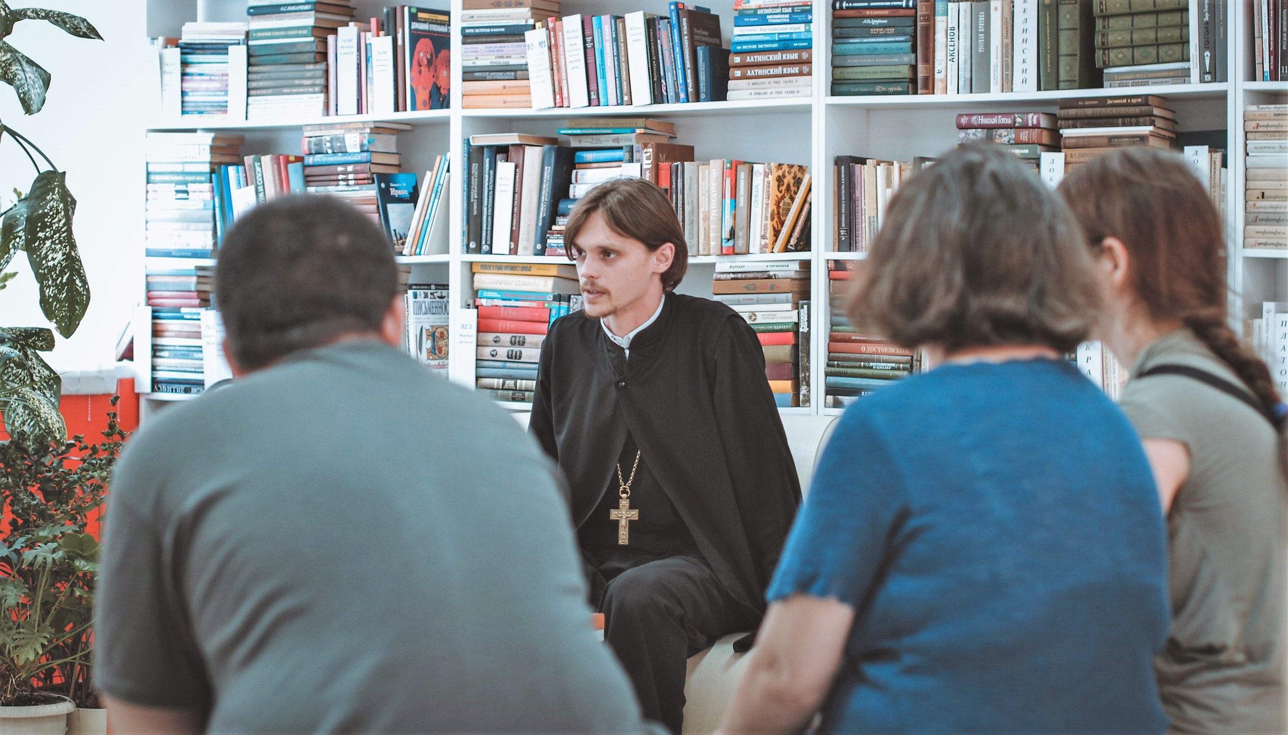 Молодые люди, пришедшие на встречу, сами предложили провести беседу в формате «вопрос-ответ». Слушатели задали священнику наиболее интересующие их вопросы, которые касались многих тем: от отзывов на прочитанные книги и просмотренные фильмы до обсуждения остросоциальных проблем.