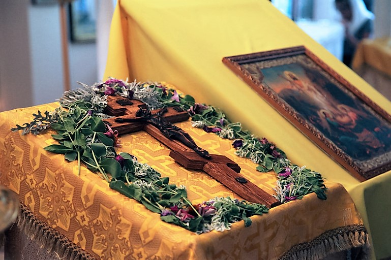 За богослужением прихожане вознесли молитвы к Господу, чтобы Он силой Честного и Животворящего Своего Креста оградил всех нас от зол и болезней. По прочтении евангельского зачала протоиерей Константин обратился к прихожанам с пастырским словом.