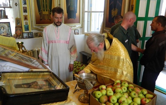 По случаю праздника Преображения Господня настоятель храма Казанской иконы Божией Матери иеромонах Николай (Павлов) посетил исправительную колонию №8, где совершил чин освящения плодов и поздравил всех с праздником.