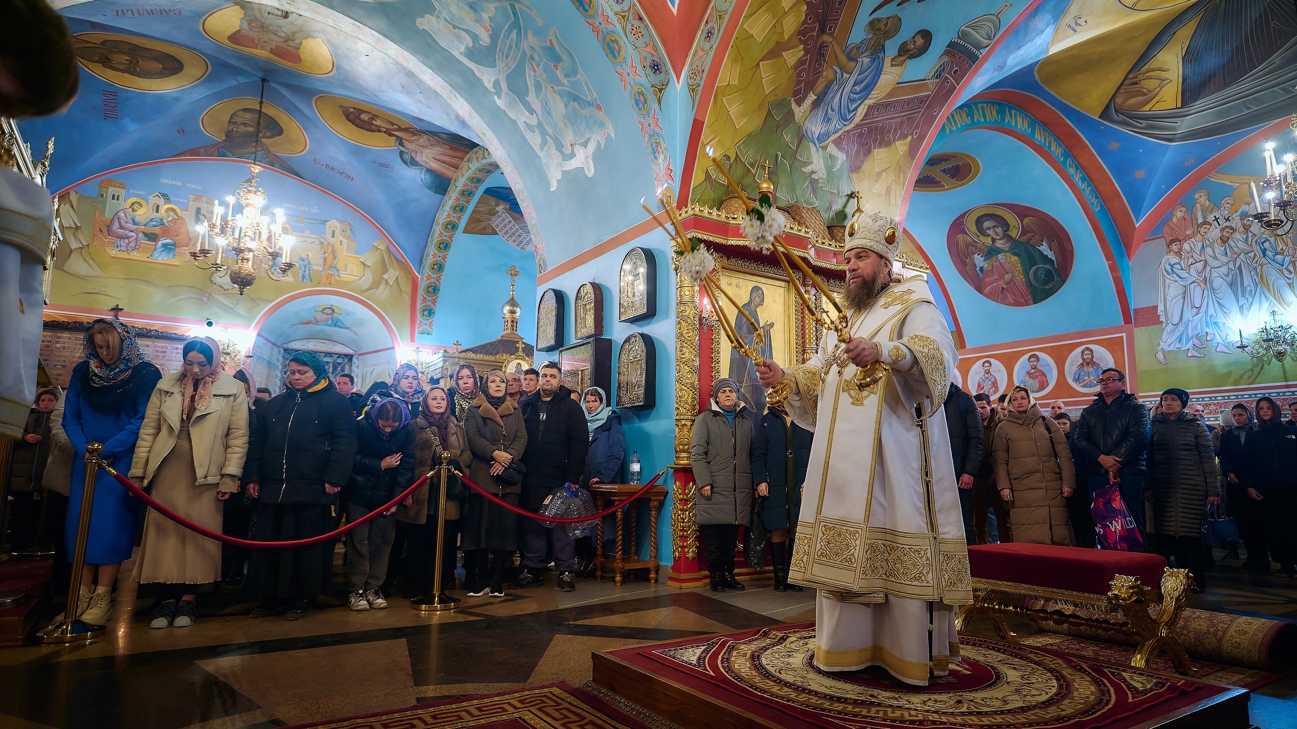 18 января 2024 года, в канун праздника Крещения Господня, митрополит Астраханский и Камызякский Никон совершил в Покровском соборе праздничное богослужение, состоящее из великого повечерия с литией и утрени.