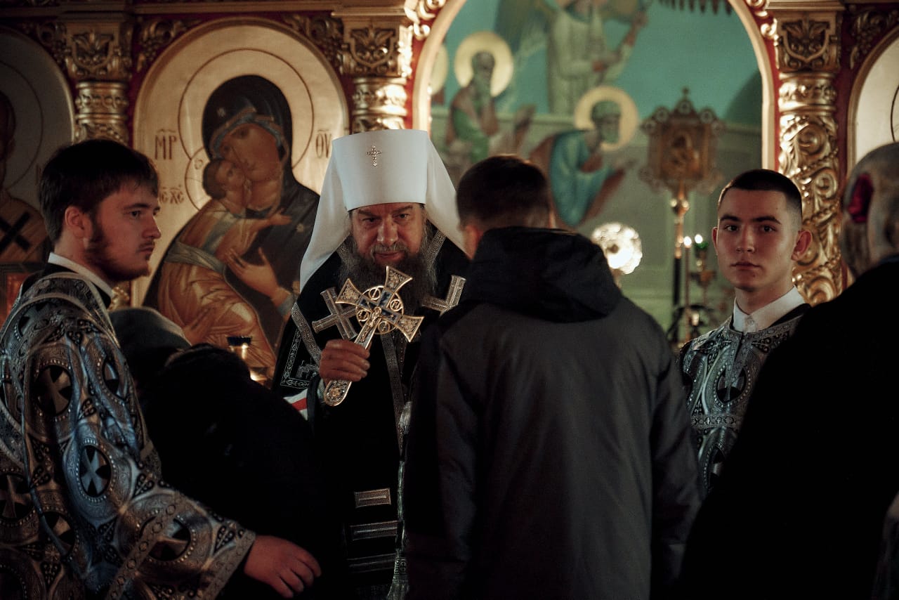 После отпуста вечерни владыка прочитал молитву на начало Святой Четыредесятницы и обратился к верующим с архипастырским словом, испросив у всех прощения.