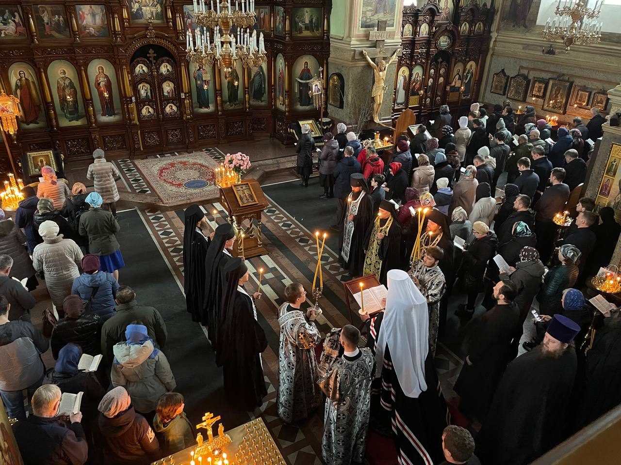 Вечером этого же дня владыка совершил великое повечерие с чтением Великого канона преподобного Андрея Критского в Иоанно-Предтеченском монастыре.