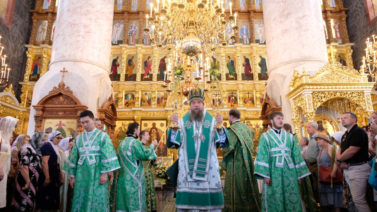 23 июня 2024 г., в праздник Святой Троицы, митрополит Астраханский и Камызякский Никон совершил Божественную литургию в Успенском кафедральном соборе.