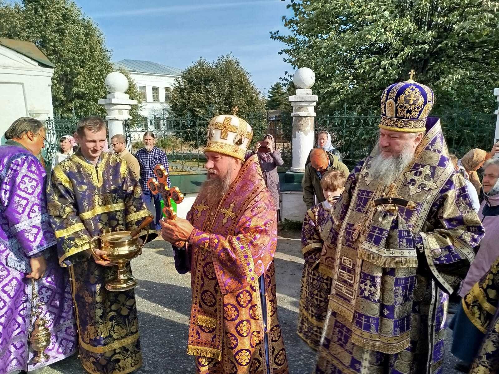 27 сентября 2024 г., в праздник Воздвижения Честного и Животворящего Креста Господня, митрополит Астраханский и Камызякский Никон и епископ Кинешемский и Палехский Иларион в сослужении духовенства Палехского благочиния совершили праздничное богослужение в Крестовоздвиженском кафедральном соборе п. Палех.
